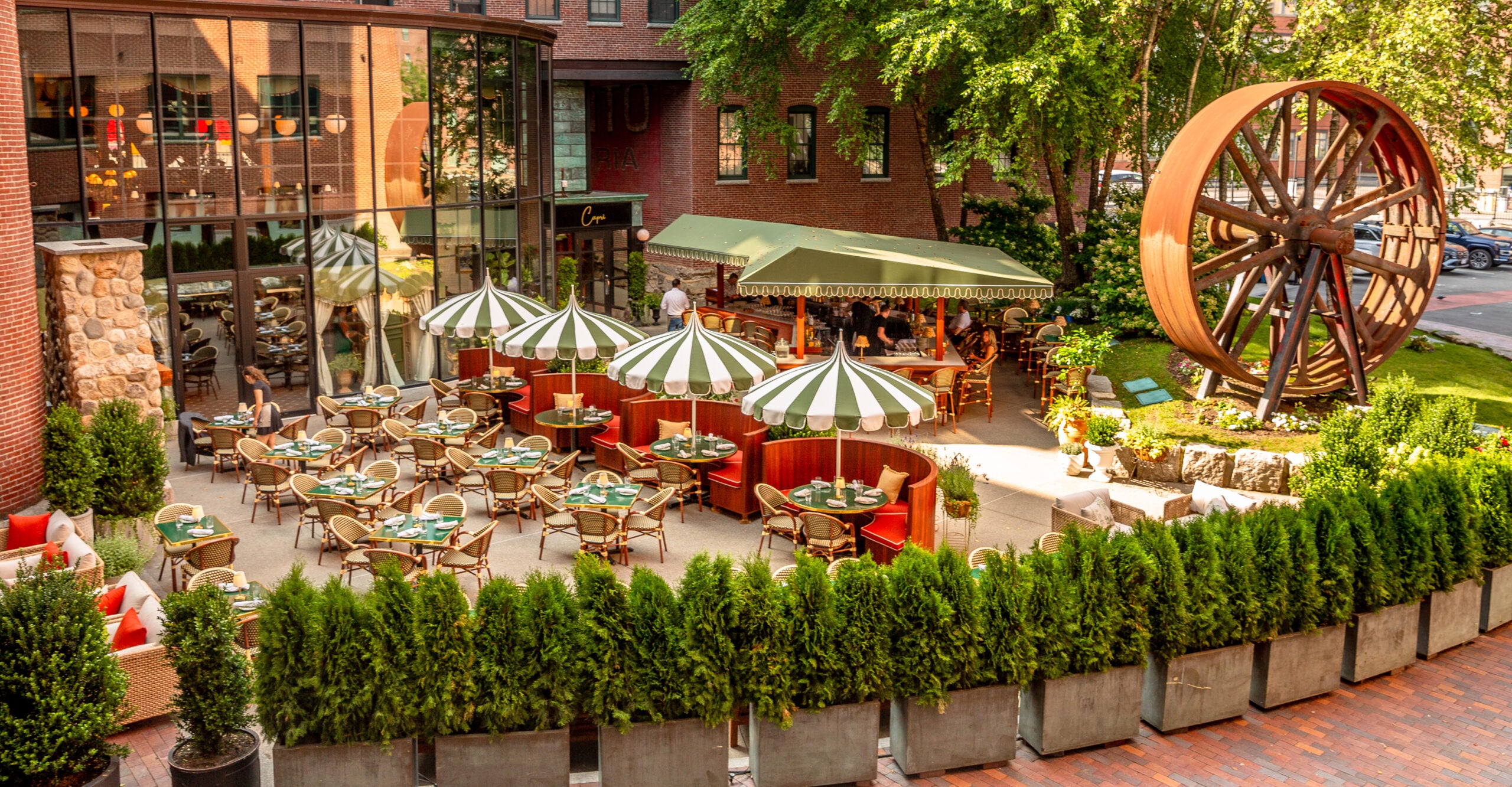 South End’s newest restaurant may feel familiar to fans of its sibling restaurant, Prima in Charlestown, with an emphasis on multiple dining experiences from the garden level private dining to an upstairs lounge and the main dining area under a soaring, two-story atrium. Yet, the new space, Capri, is more of a destination with a vibe inspired by the Italian Riviera and effortlessly executed by Assembly Design (think: a dining room dotted with olive trees, custom wooden booths, and green and white striped umbrellas). Capri also differs from Prima with its centerpiece piano in the main dining area as well as a sprawling outdoor patio complete with an al fresco Cabana bar, fireplace and firepit seating. On the menu, Prima features exclusively hand-rolled, handmade pastas like rigatoni all vodka ($24) and tortellini di mais with spicy Calabrian butter ($26), and as the name implies, there’s no shortage of steaks and chops, including large cuts of dry aged Florentine beef ($160) and Brandt Tomahawk ($160). There are also Italian classics like chicken or veal Milanese ($26), chicken piccata ($24) and choose your own adventure al forno parmesan with chicken, veal or eggplant ($22-26). Signature cocktails were designed to be sipped under the stars of the Italian riviera on Capri’s terrace, incorporating fresh botanicals and ingredients—like the Bell Pepper Gimlet with Hendricks gin, raspberry, génépy and lemon ($16) or the Just Peachy with Aperol, peach, lemon, basil and Prosecco ($16).