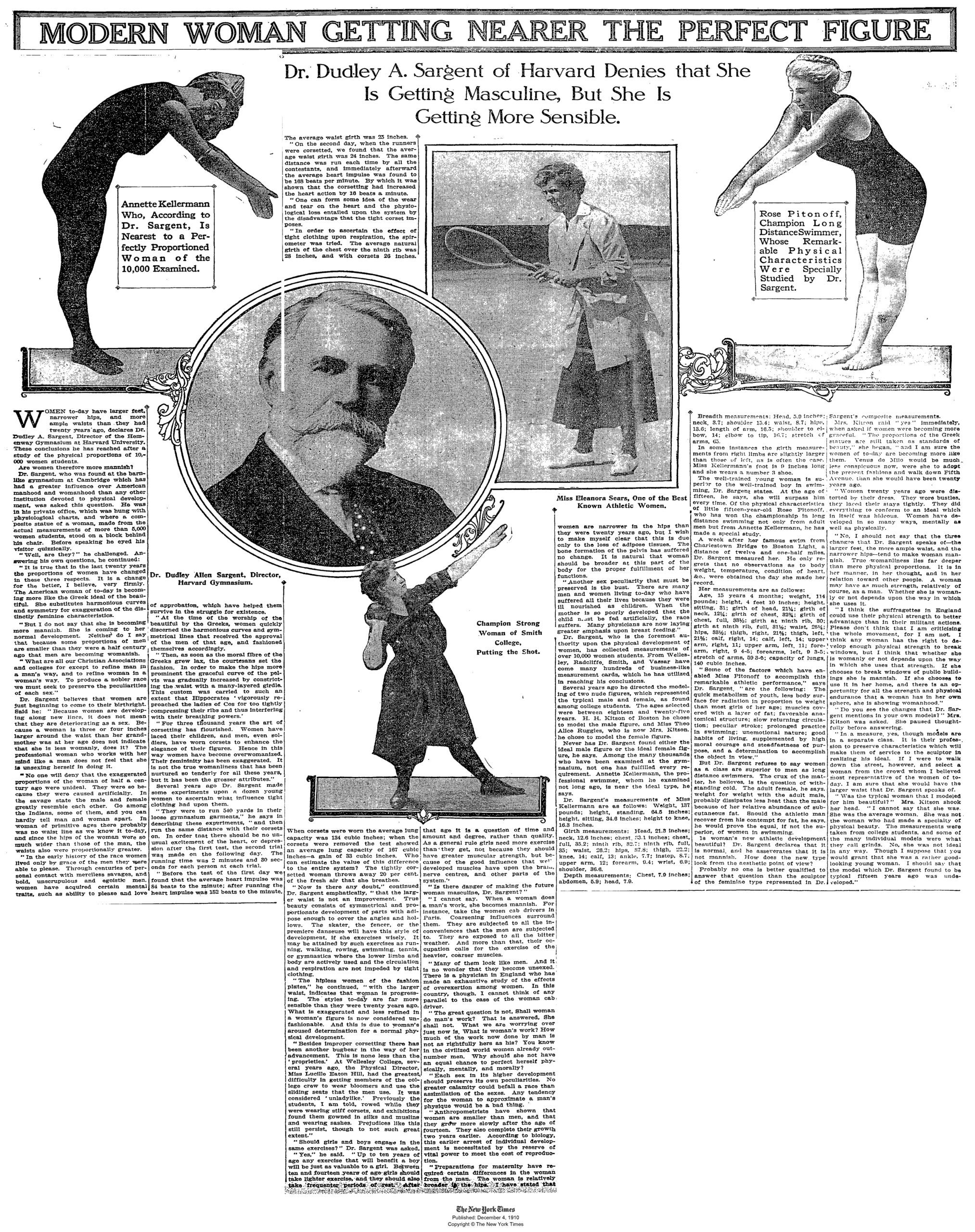 The director of Harvard University’s Hemenway Gymnasium, Dudley Sargent, declared Kellermann the closest “to a perfectly proportioned woman.”