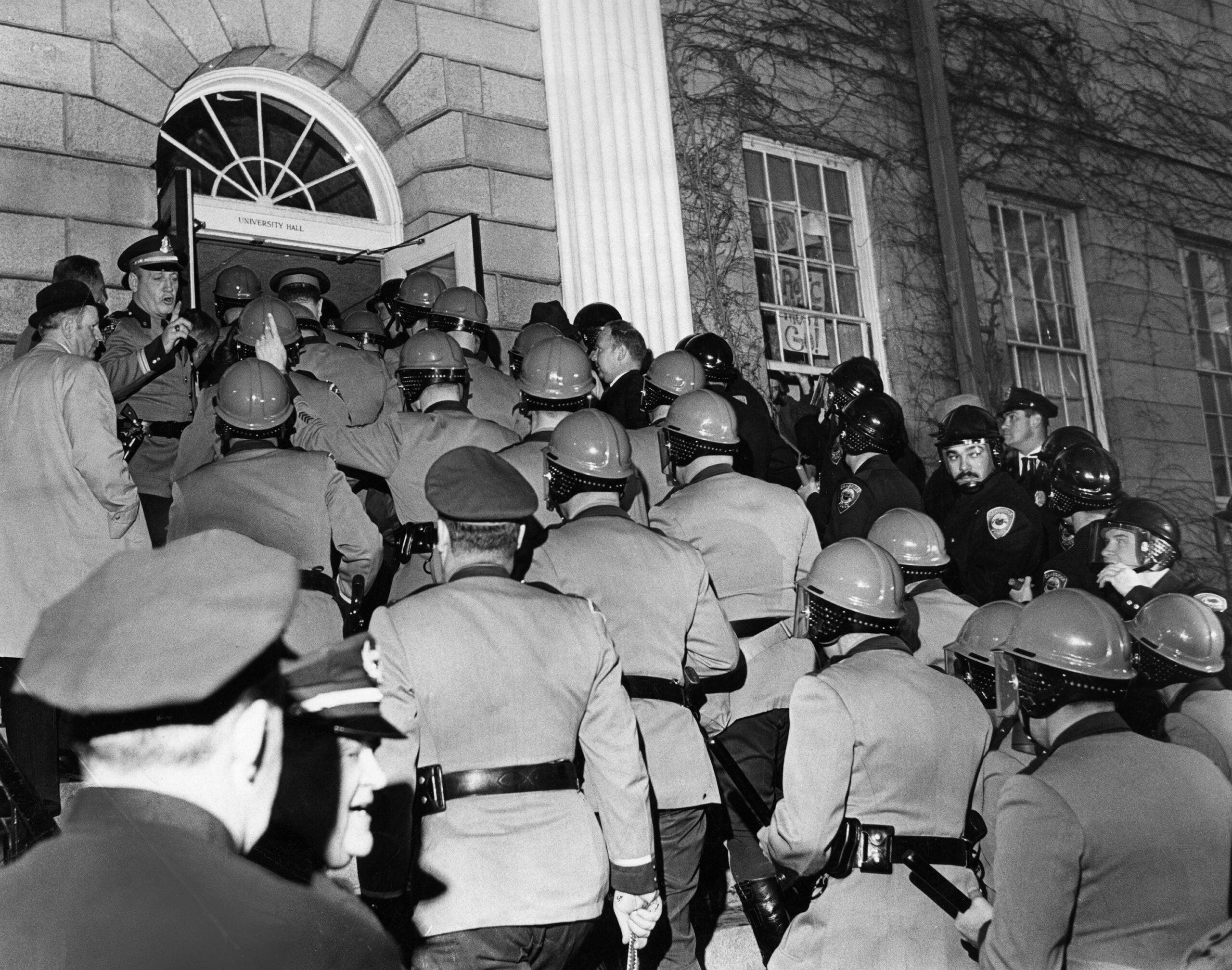 Crowds poured into University Hall and took over the building. Later, Pusey announced there would be police action to remove the students.