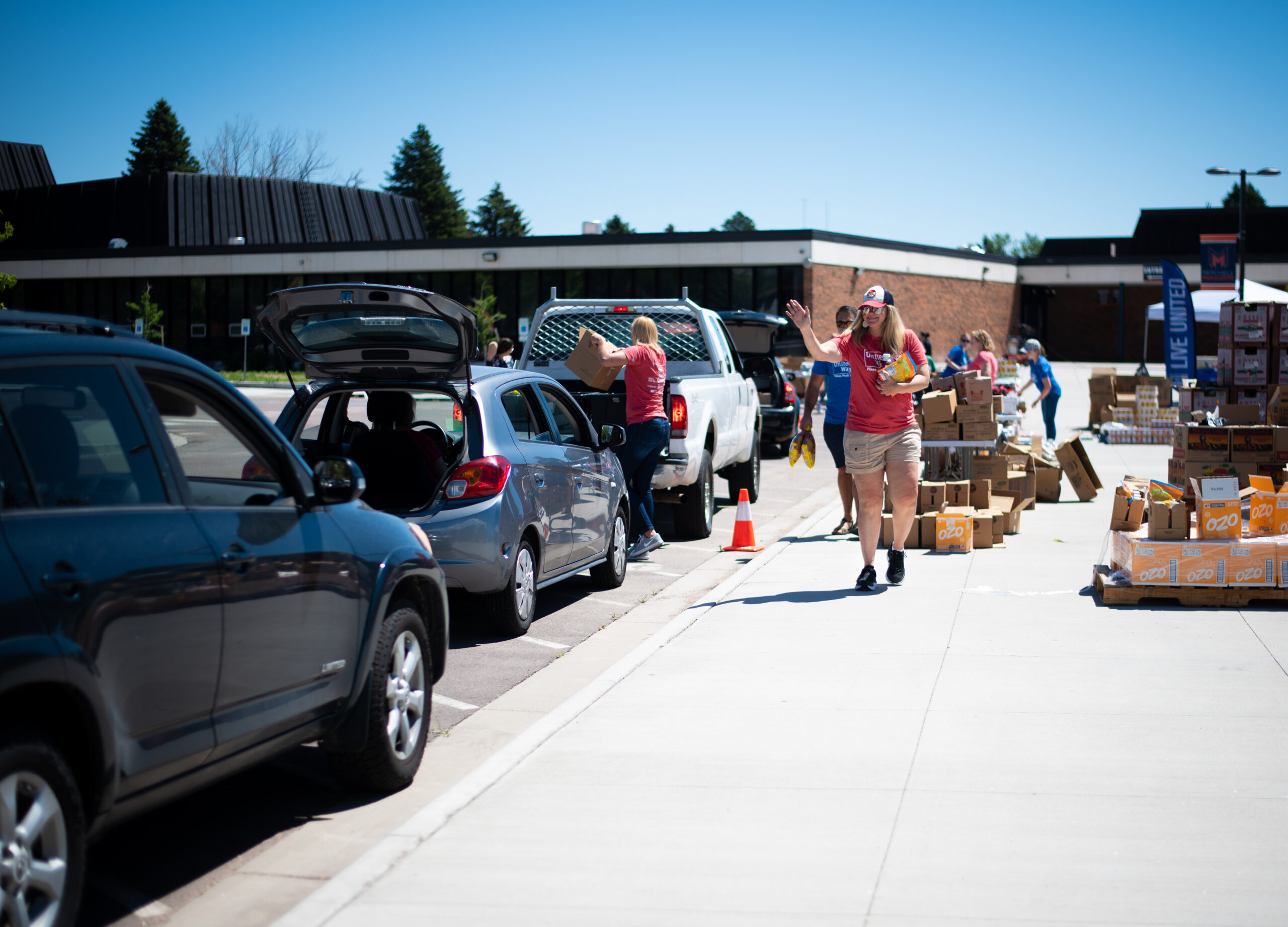 While the main and most efficient way we are able to get nutritious food to our neighbors in need is by distributing millions of pounds through our network of partner food pantries, we know there are some areas where we don’t have partners to work with. On top of that, these areas lack good access to big grocery stores. In that case, we’ll bring in our Mobile Food Pantry program. Neighbors receive a variety of staple pantry items, produce, dairy, protein, and snacks.
